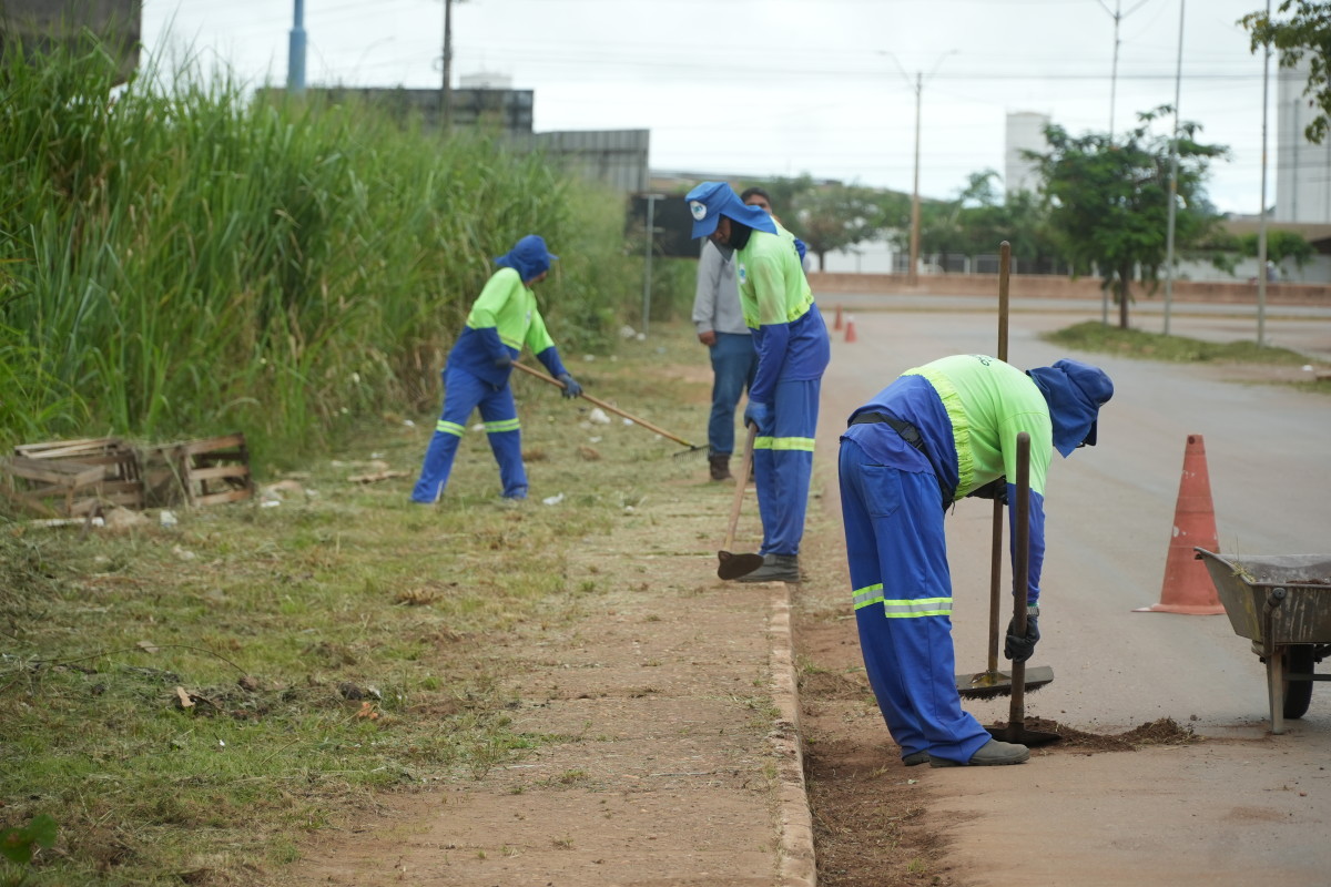 Na manhã da última quinta-feira (26), equipes realizaram no local serviços de limpeza, incluindo varrição, roçagem, manutenção do canteiro central, entre outras ações de zeladoria urbana.