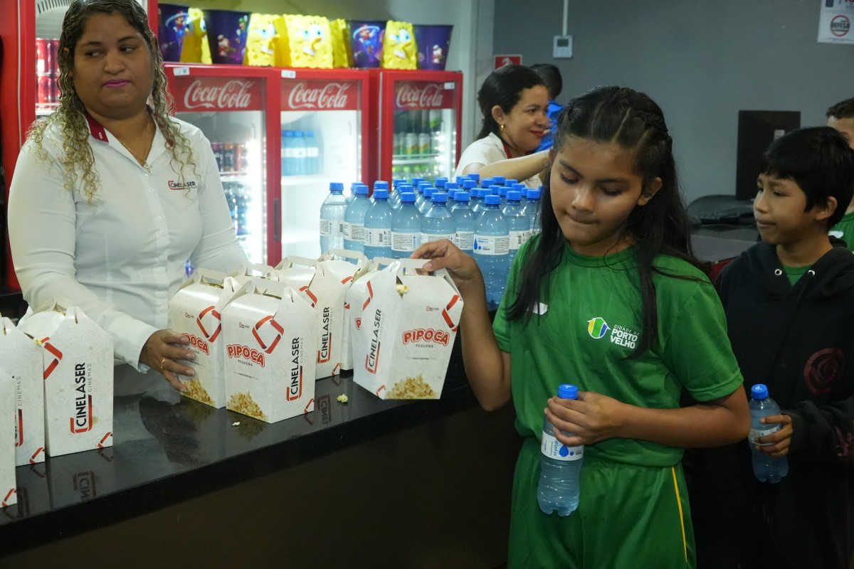 O momento especial foi proporcionado pela Prefeitura de Porto Velho a Maria Clara e outros 130 alunos, por meio do programa Cine Escola, executado em parceria entre a Secretaria Municipal de Educação (Semed) e a Secretaria Municipal de Turismo, Esporte e Lazer (Semtel).